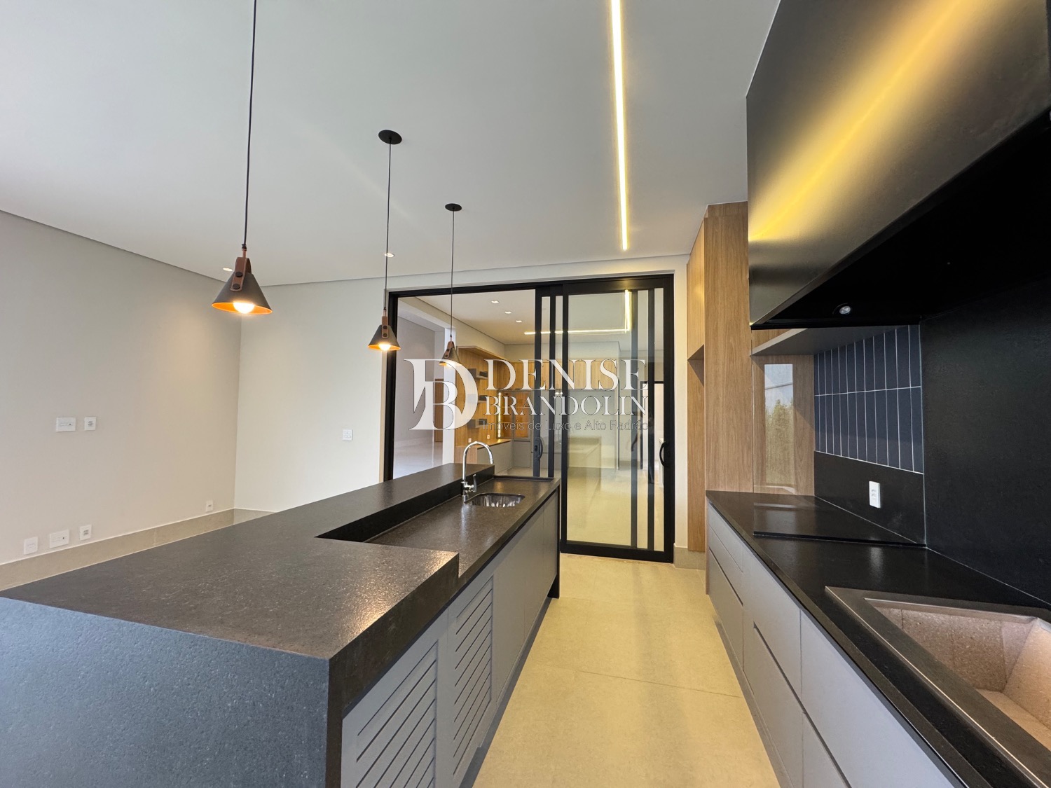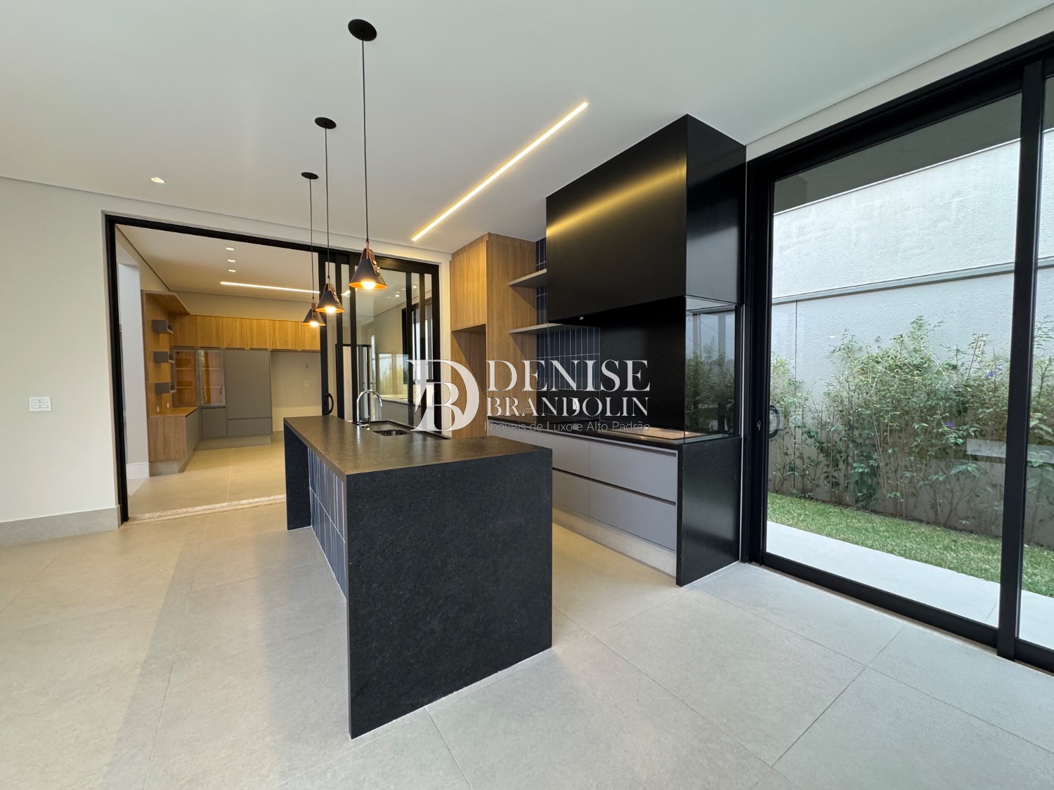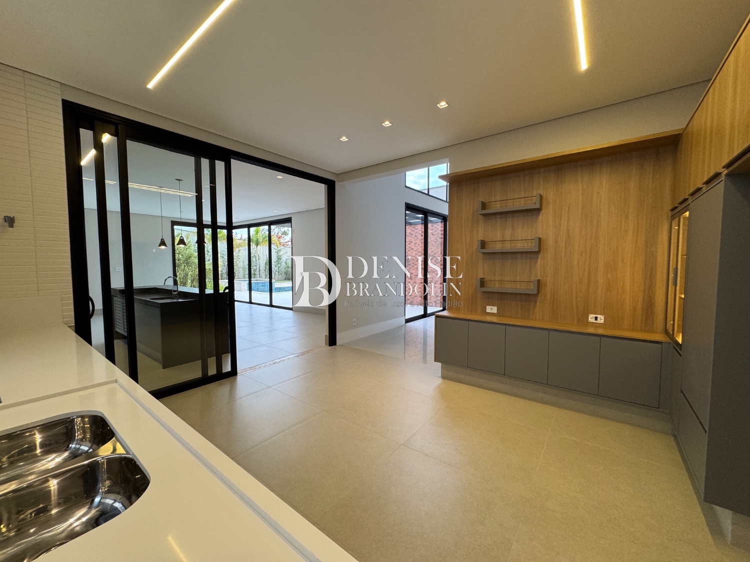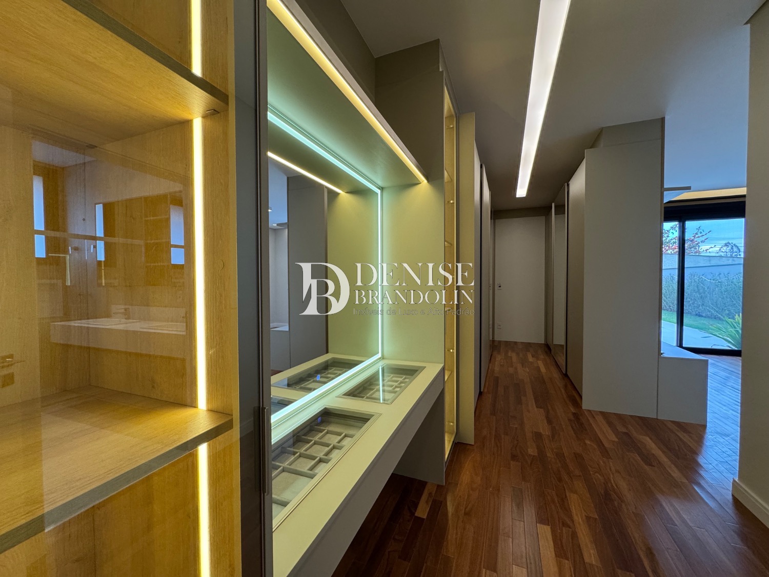 4 suítes, living para vários ambientes, sala de TV, escritório, lavabo, cozinha, despensa, lavanderia e garagem para 6 carros.