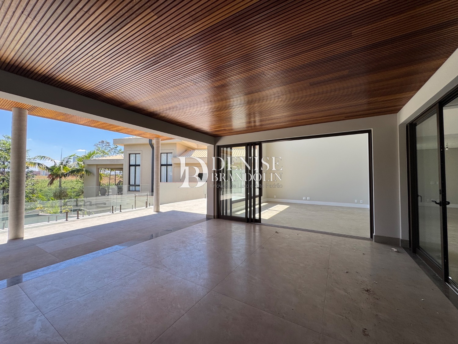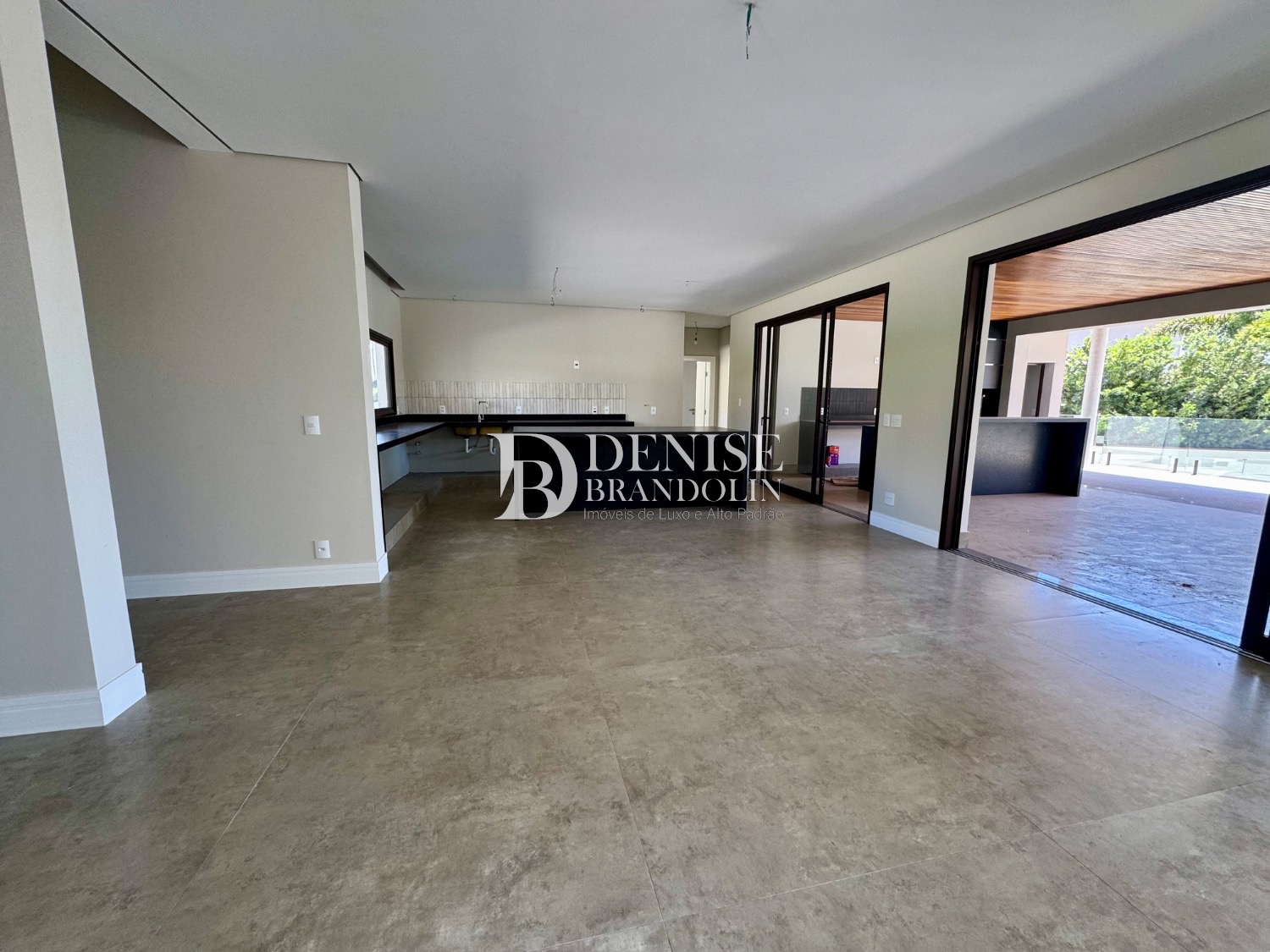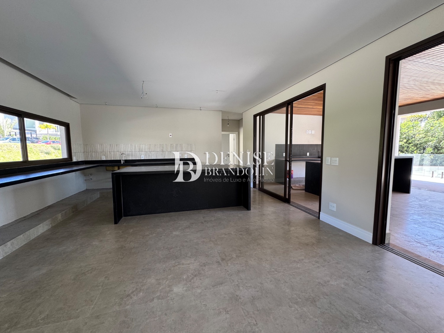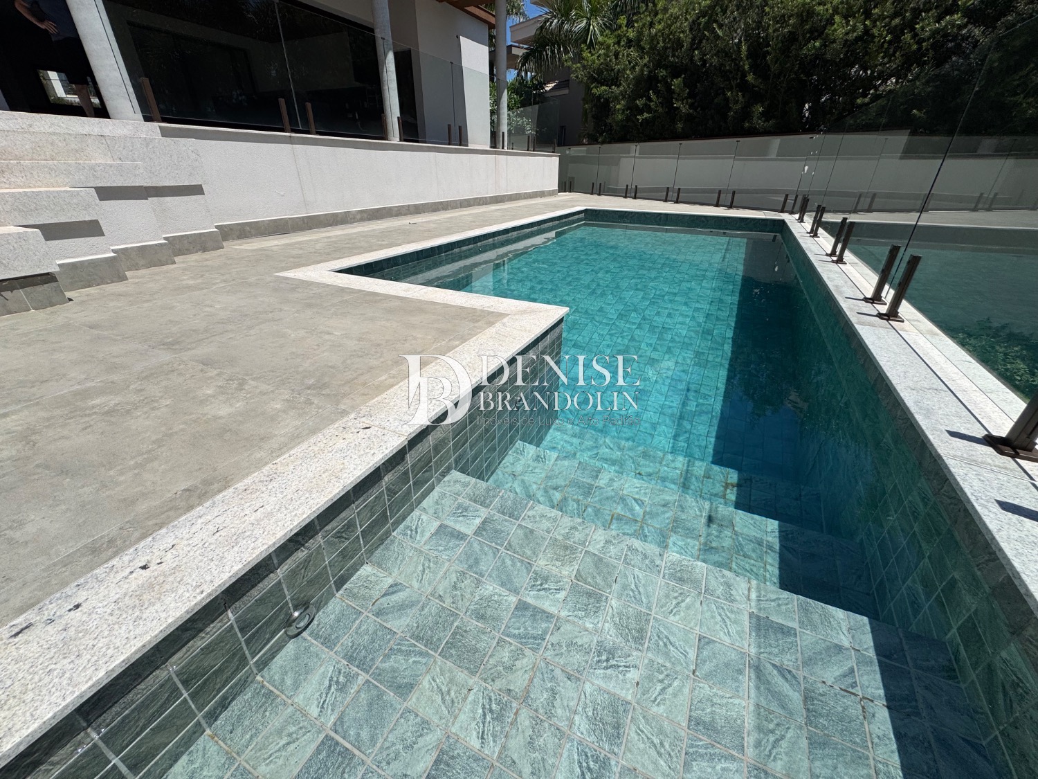 Espaço Gourmet com churrasqueira, piscina e quintal.