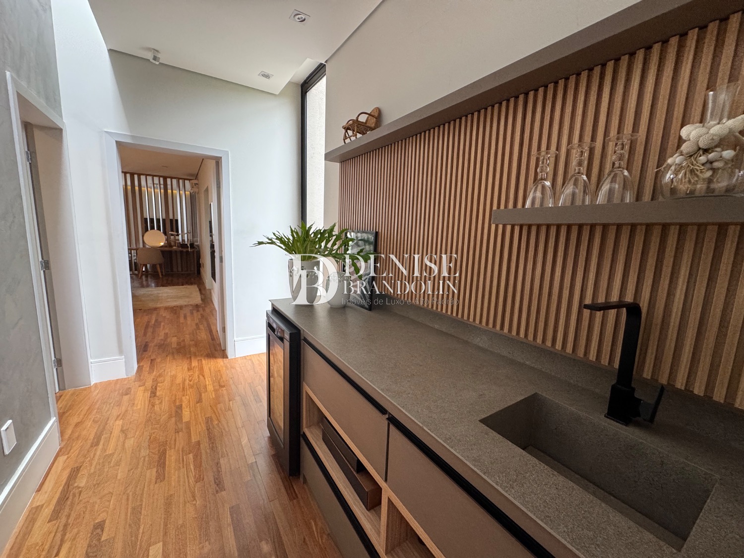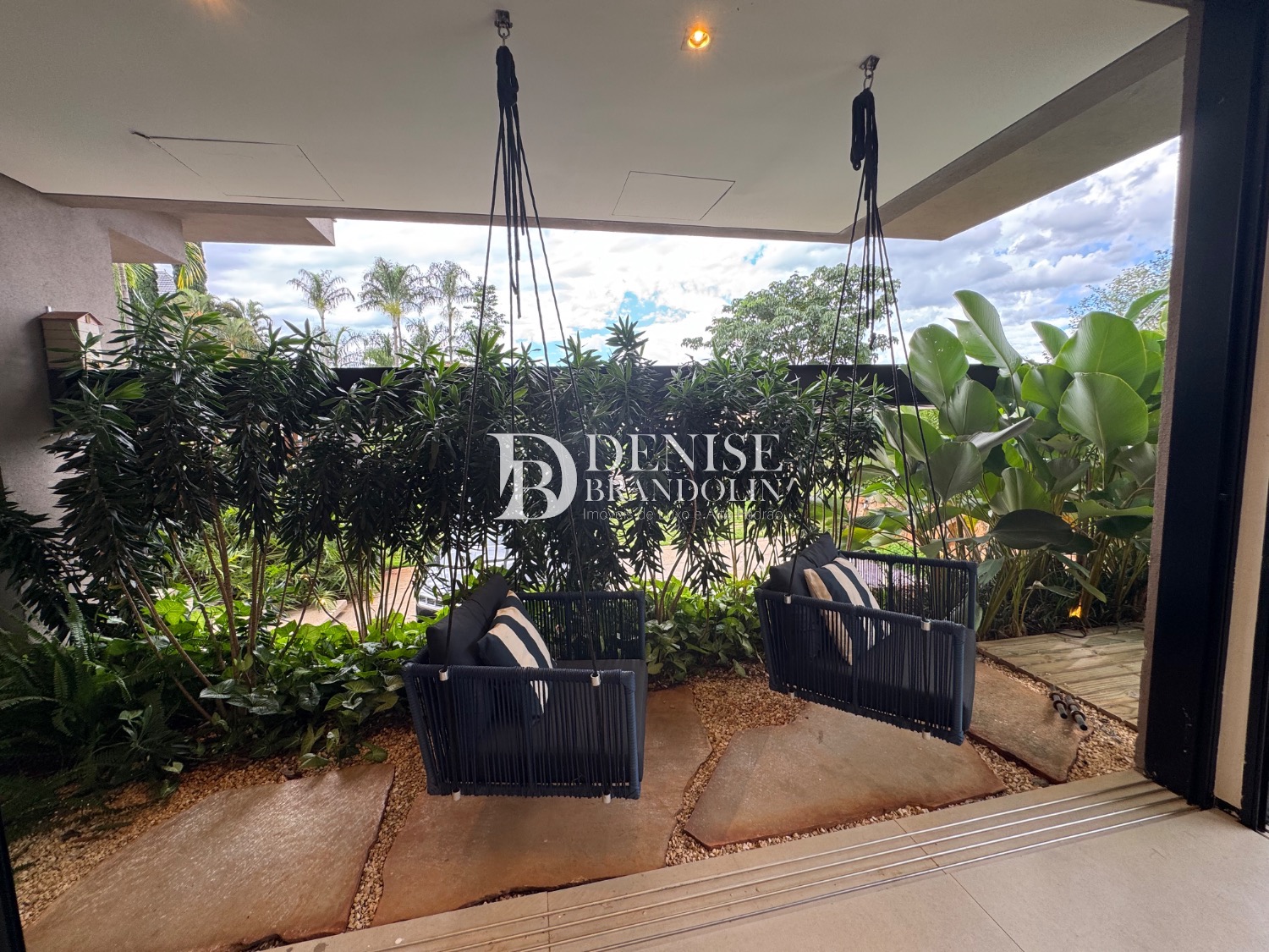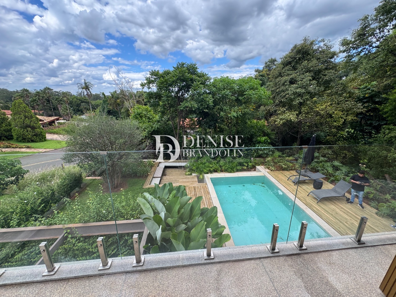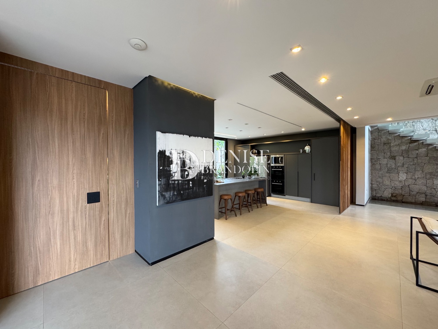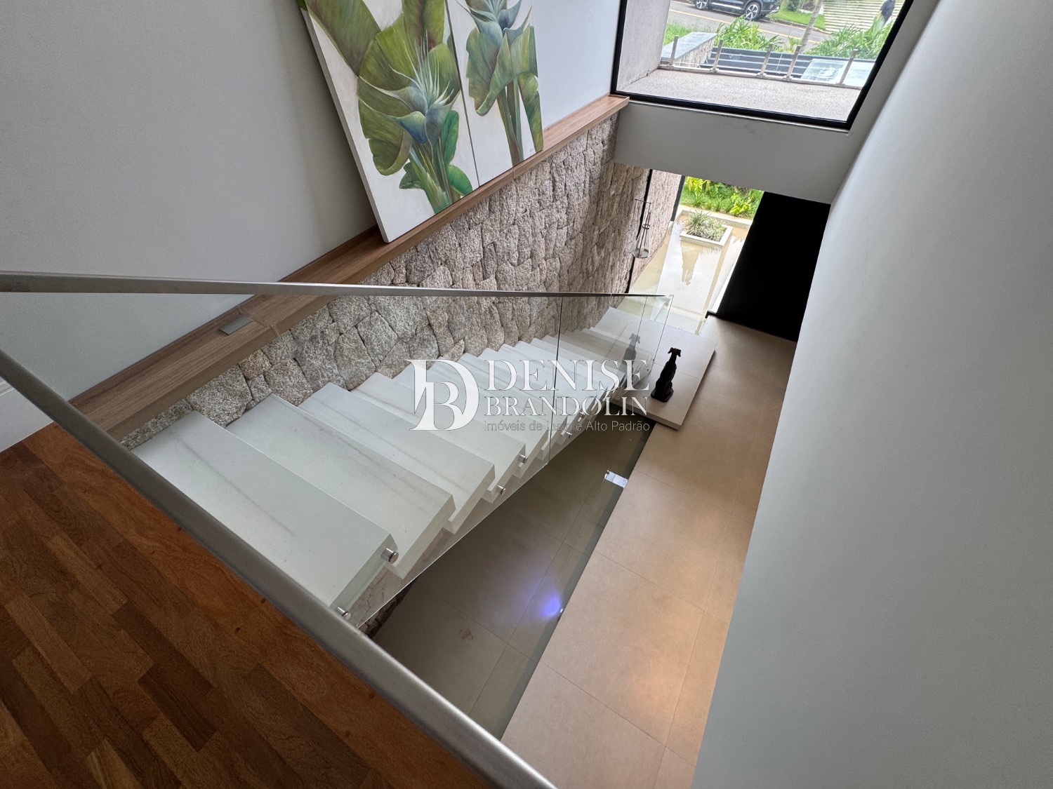 1º Pavimento: Living com pé direito para vários ambientes integrado com ambiente externo e paisagismo, lavabo, home cinema e cozinha gourmet.