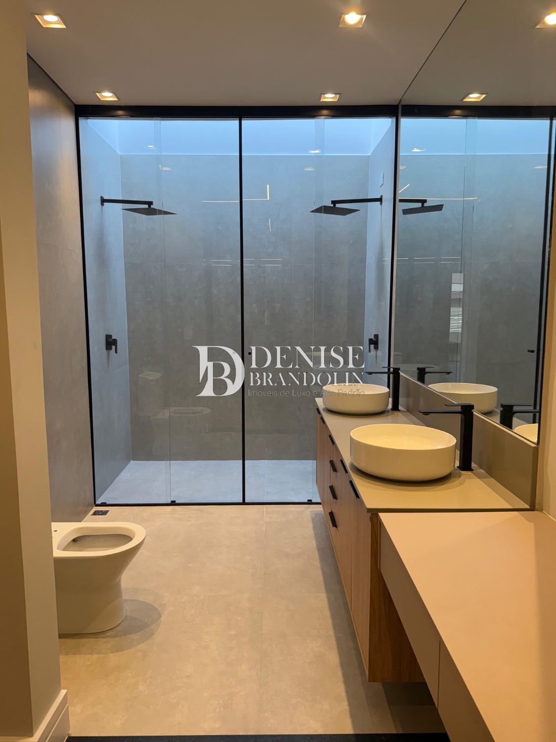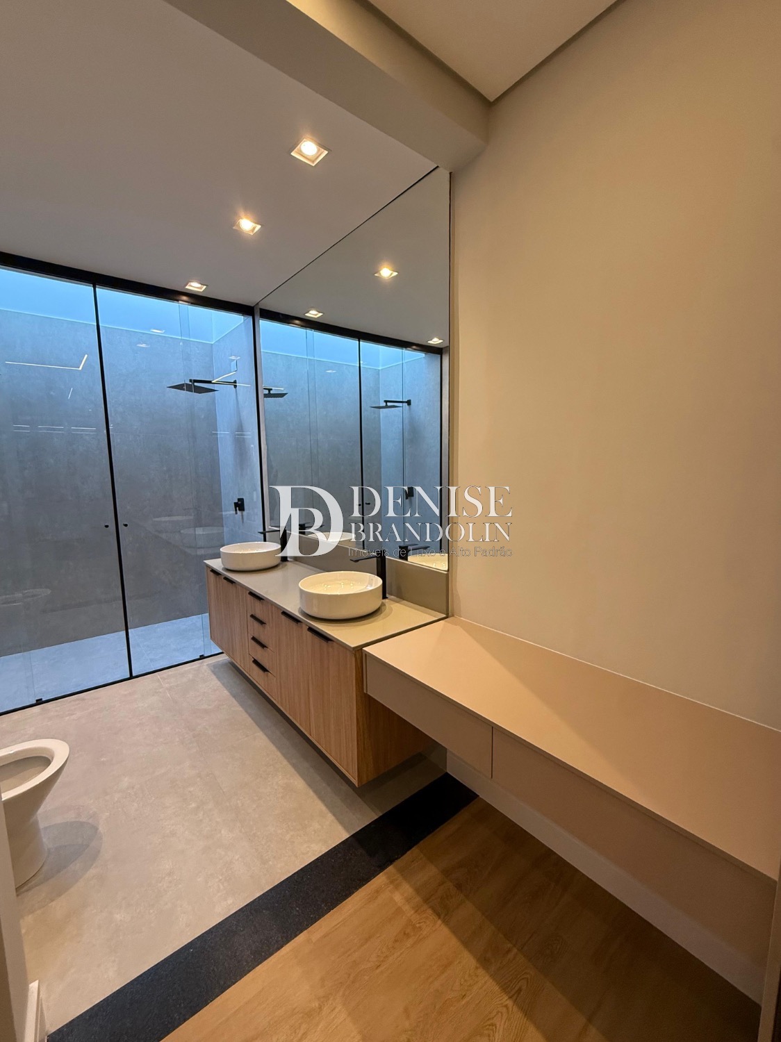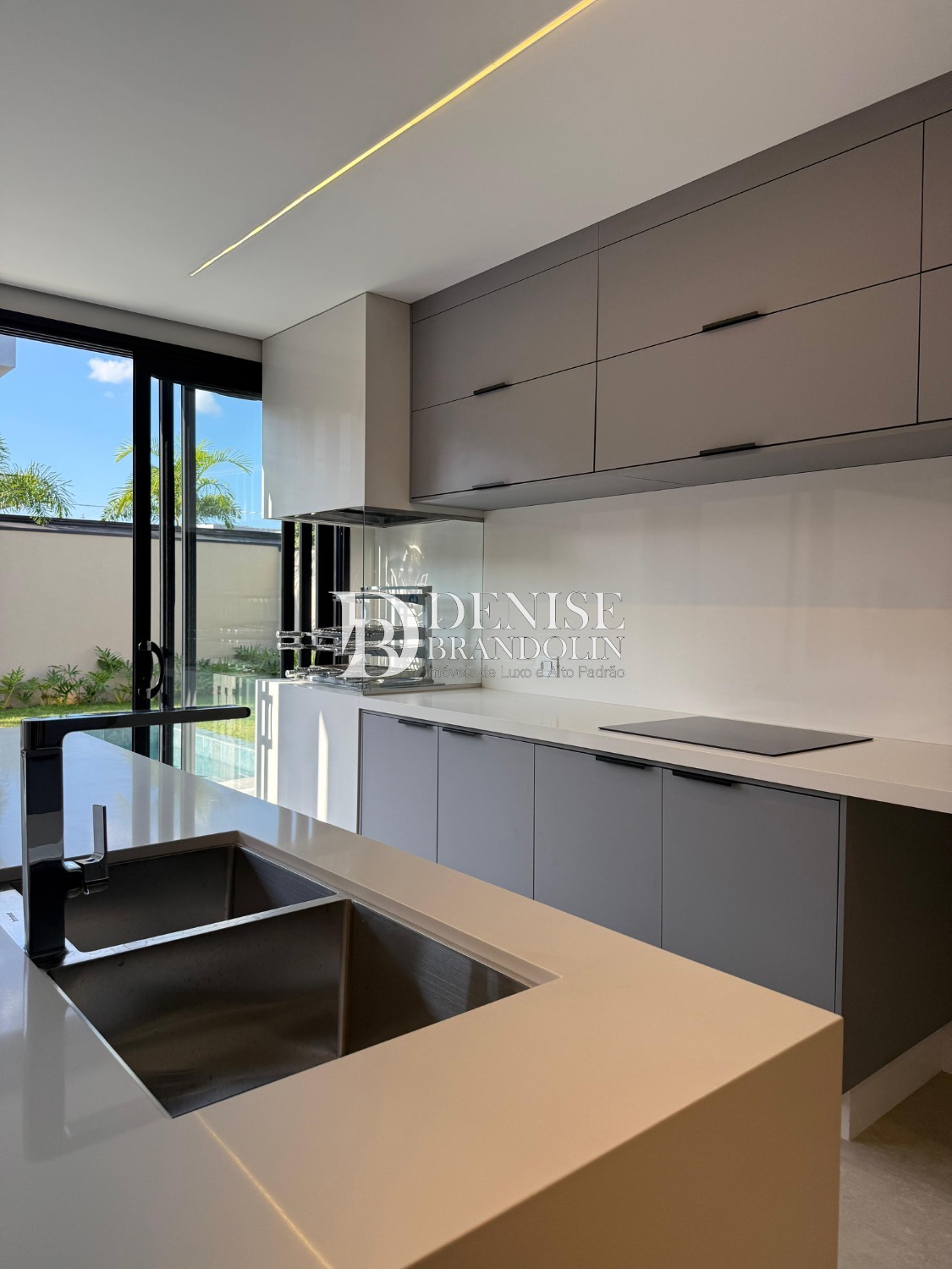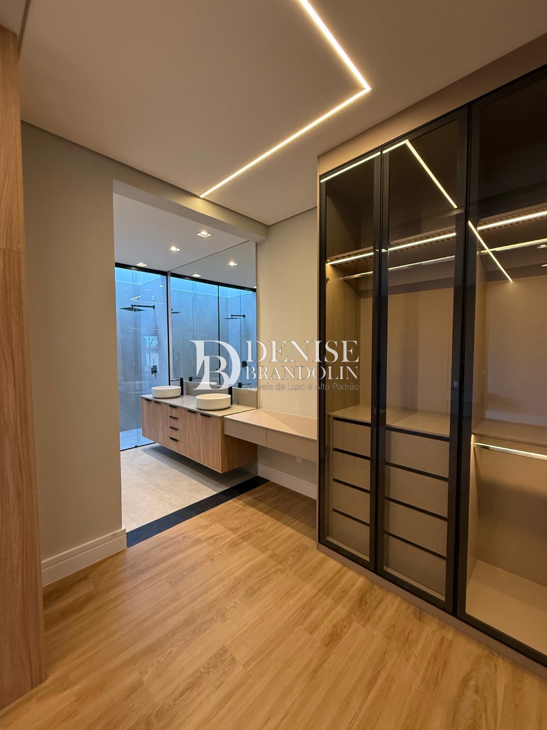 Sobrado de esquina com charmoso hall de entrada, requintado living com pé direito duplo, totalmente integrado, cozinha estilo americana rica em planejados, lavabo, suítes com persianas automatizadas e preparadas com infra para ar condicionado.