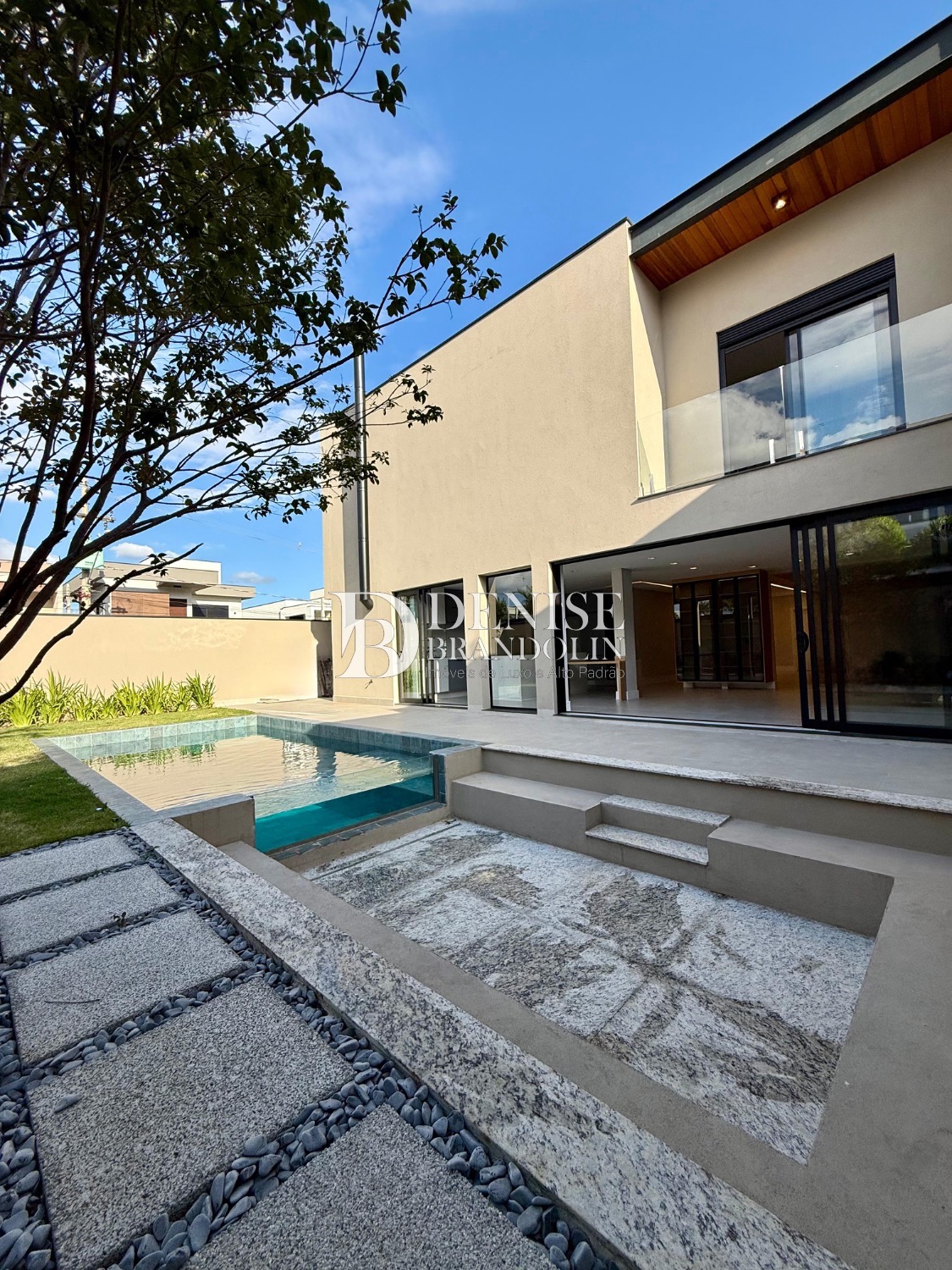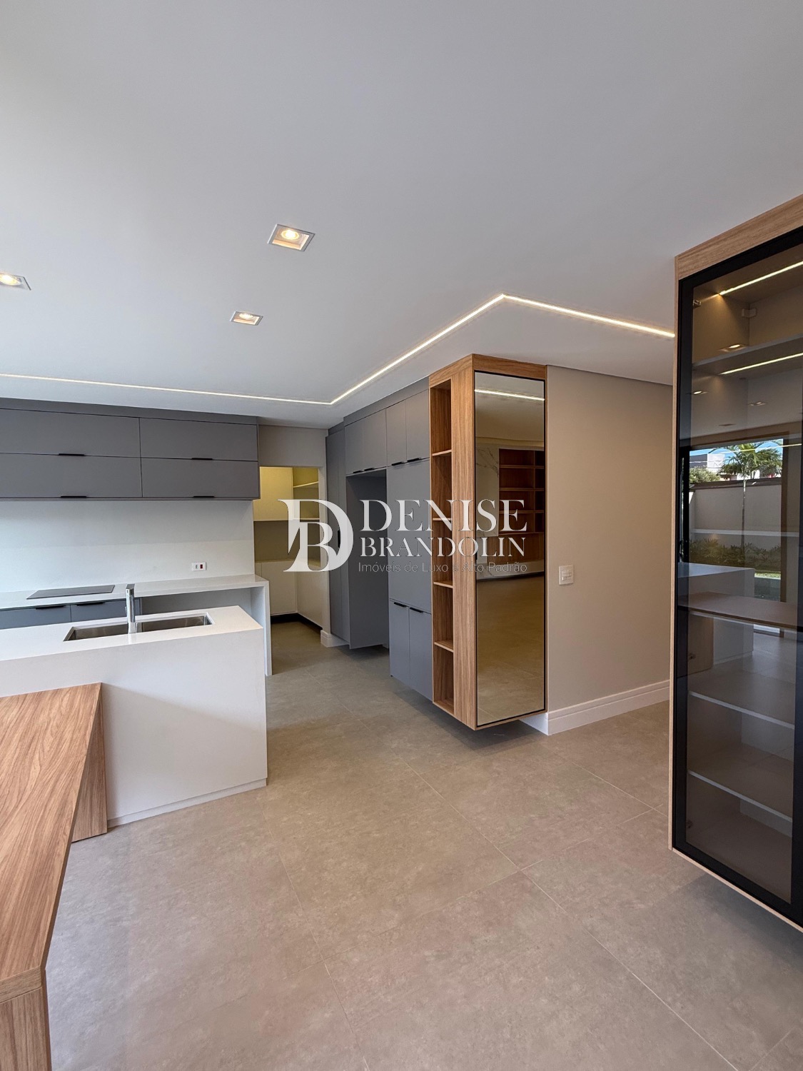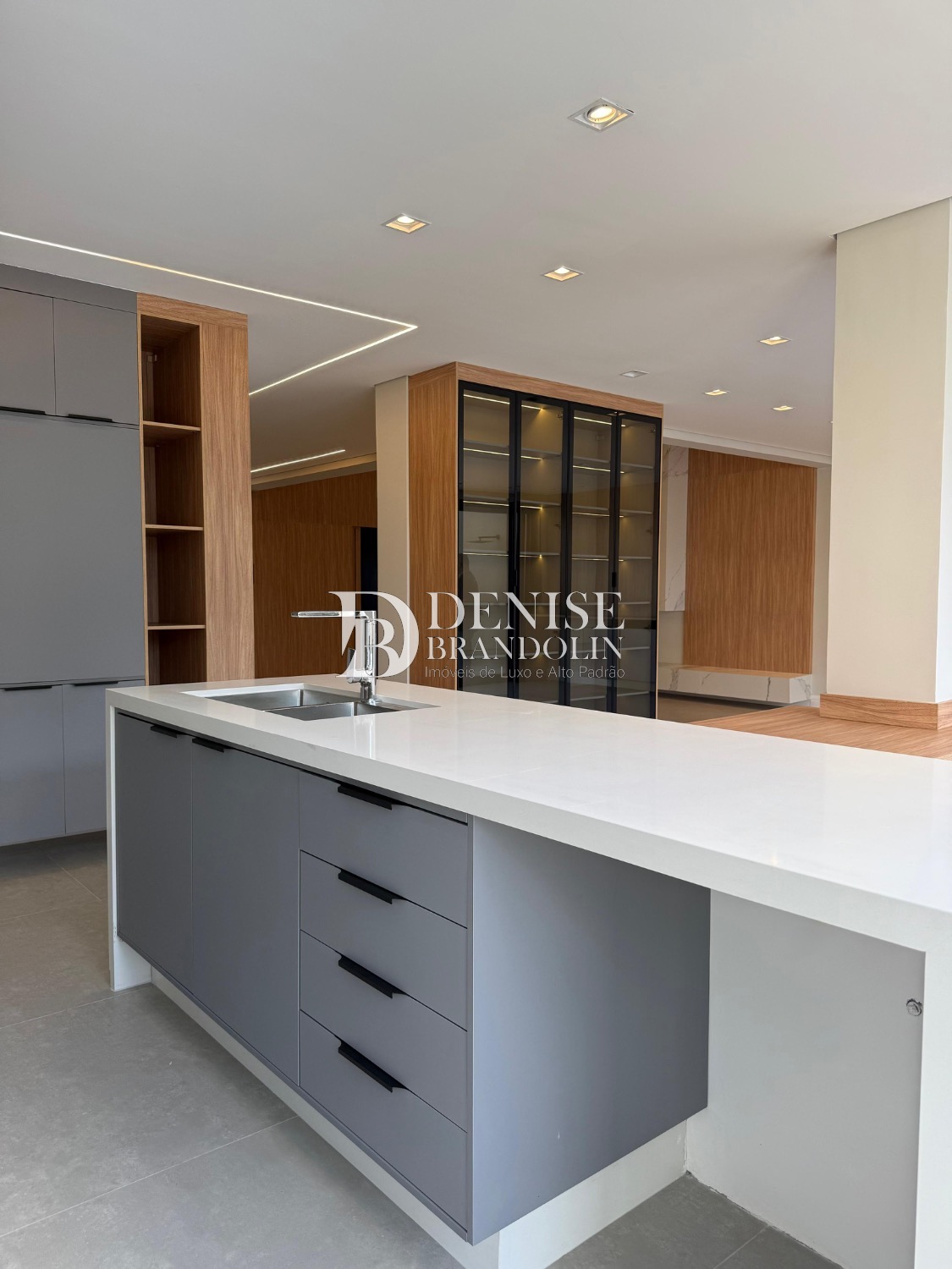 Sobrado de esquina com charmoso hall de entrada, requintado living com pé direito duplo, totalmente integrado, cozinha estilo americana rica em planejados, lavabo, suítes com persianas automatizadas e preparadas com infra para ar condicionado.