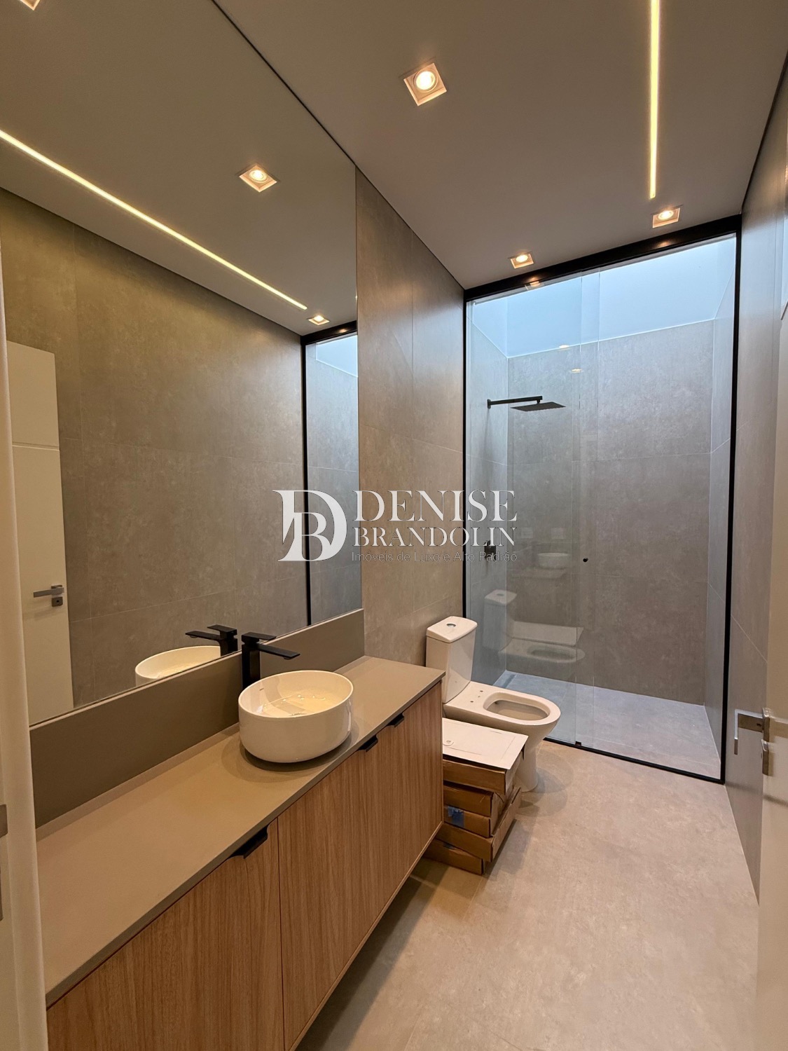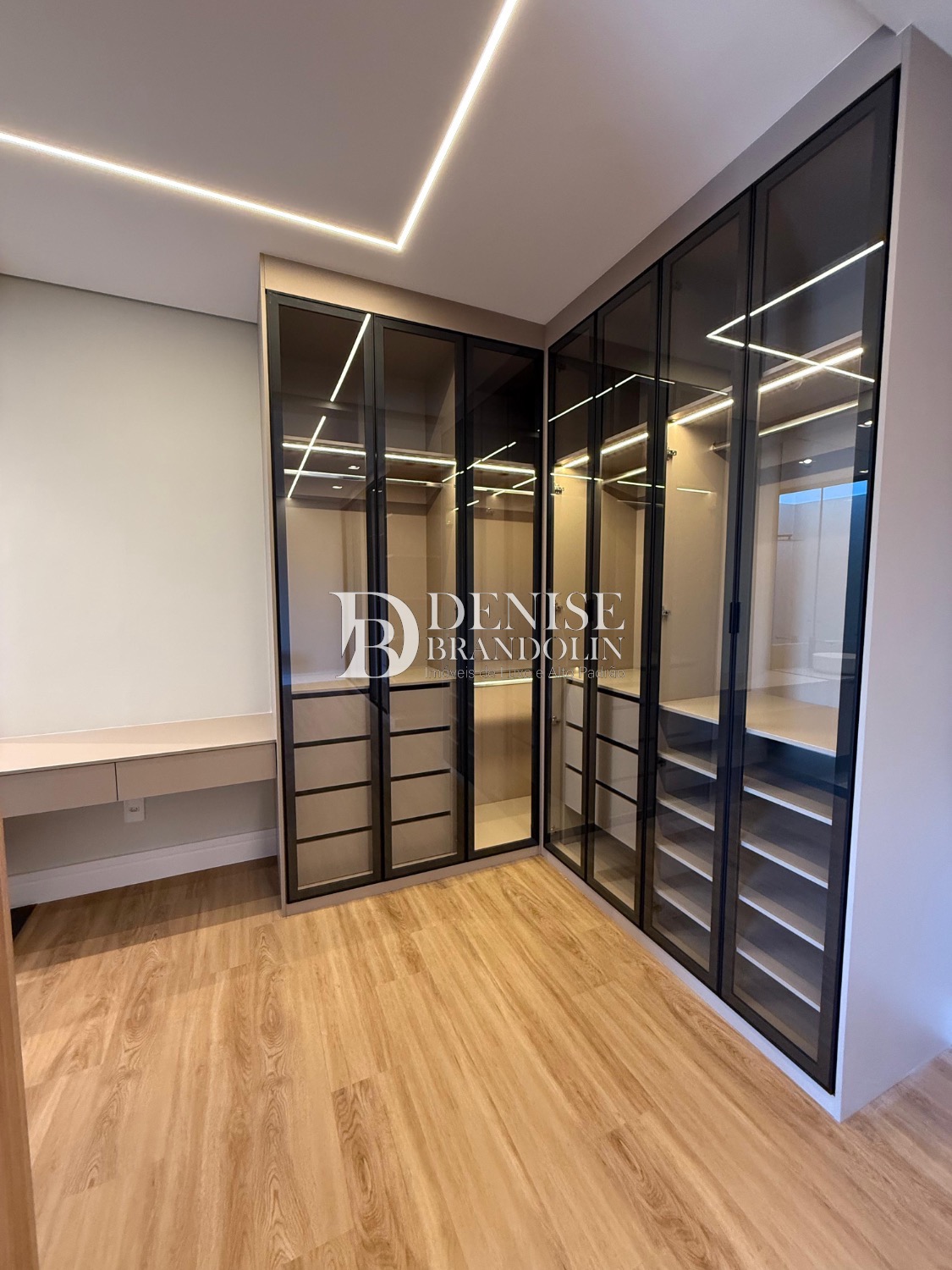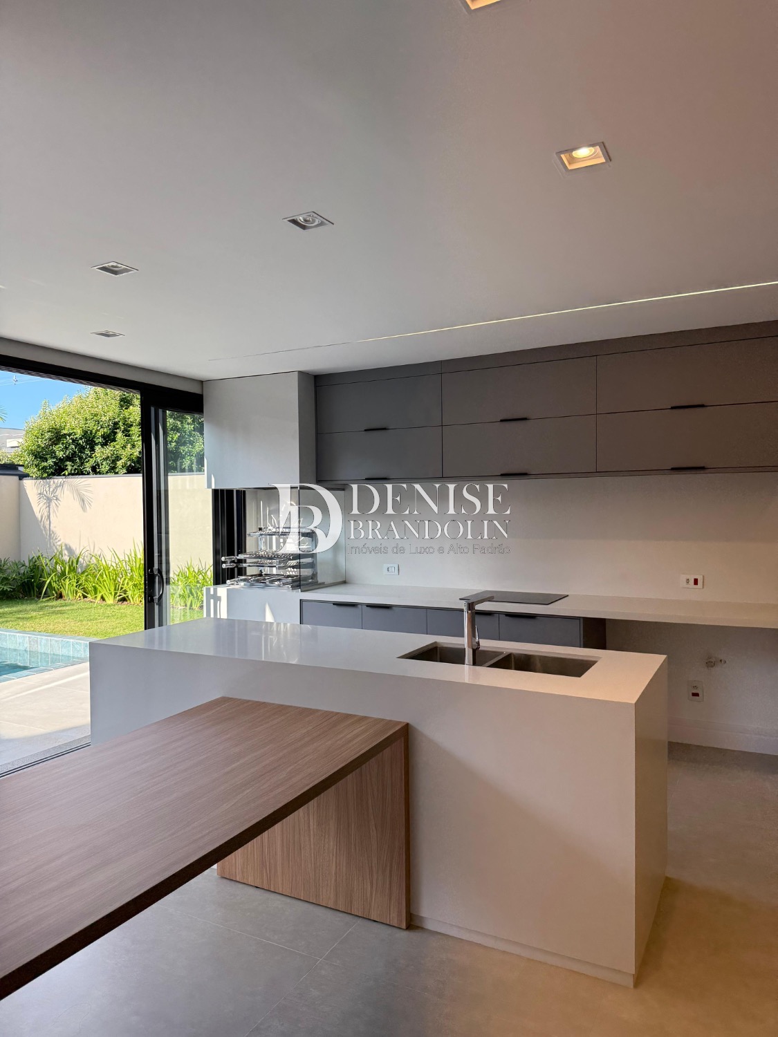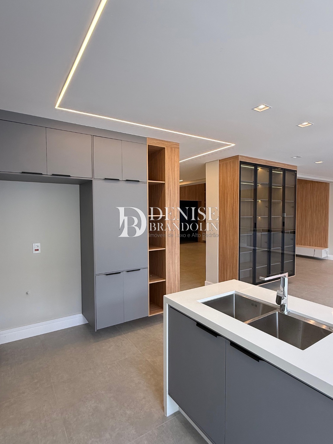 Sobrado de esquina com charmoso hall de entrada, requintado living com pé direito duplo, totalmente integrado, cozinha estilo americana rica em planejados, lavabo, suítes com persianas automatizadas e preparadas com infra para ar condicionado.