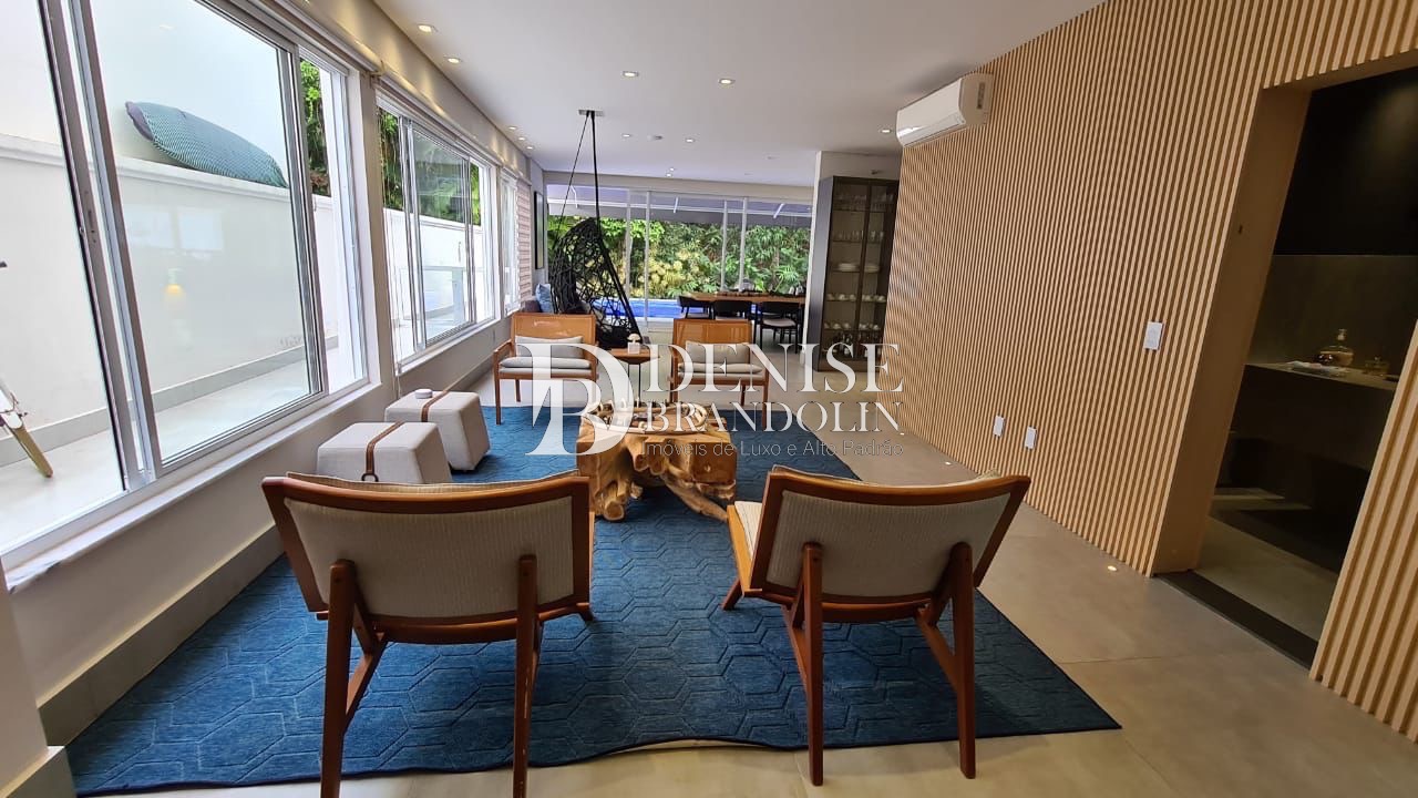 Sala para 2 ambientes com pé direito duplo, 4 suítes todas planejadas, ambientes climatizados, lavabo, depósito, despensa, copa, cozinha americana completa com toda planejada, área de serviço.