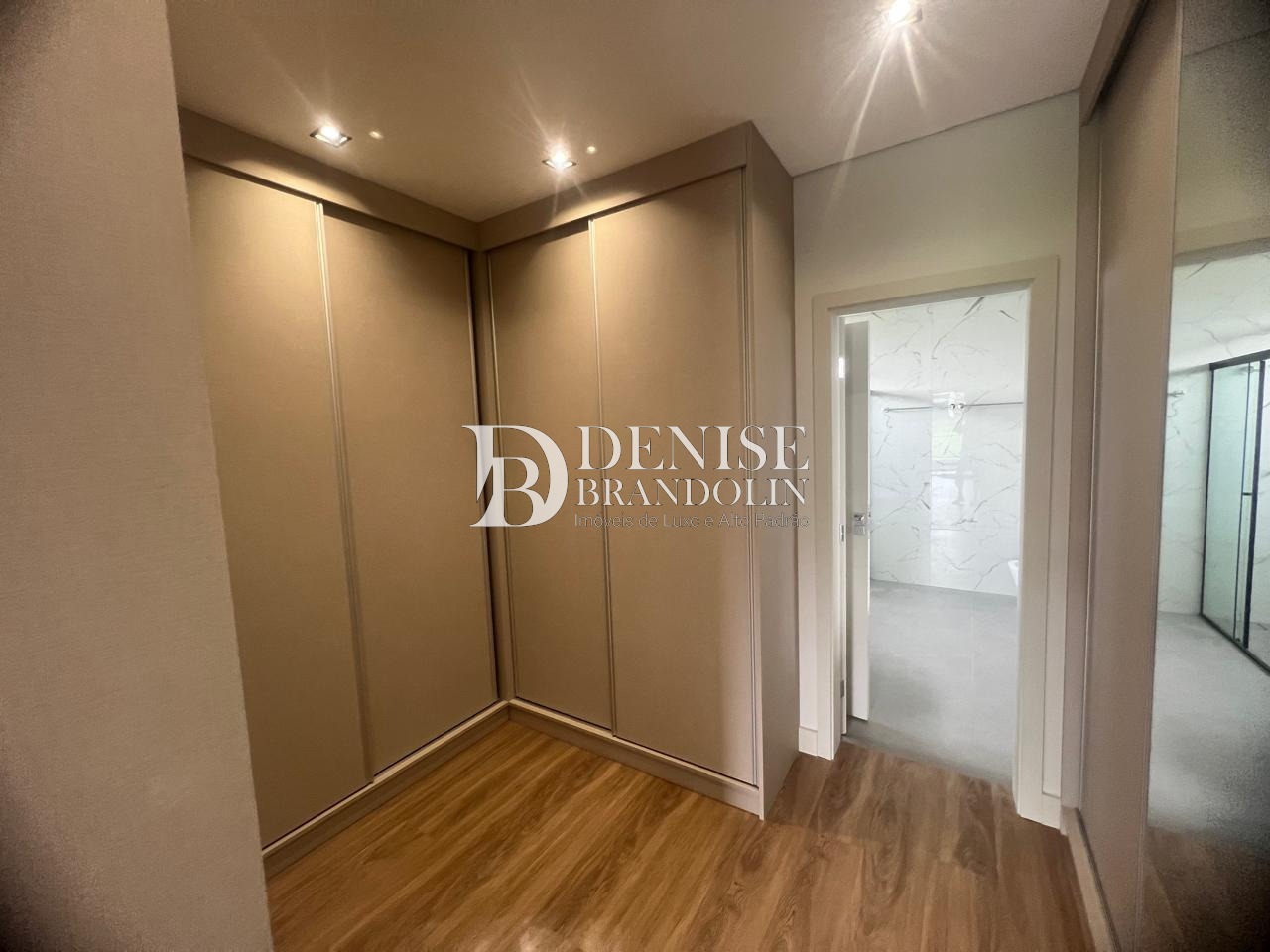 Quatro suítes no piso superior (piso vinílico), sendo a máster com banheira de imersão e closet.