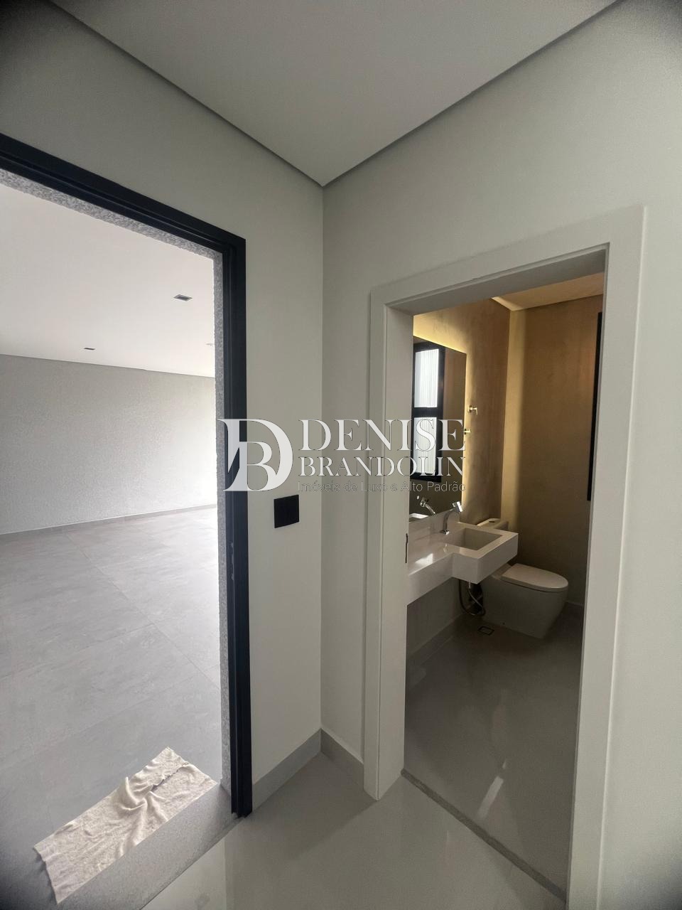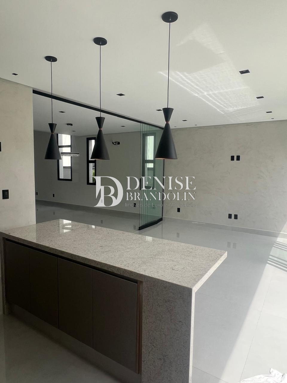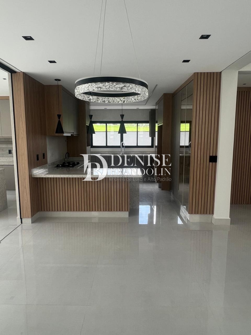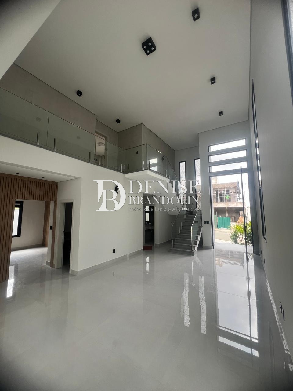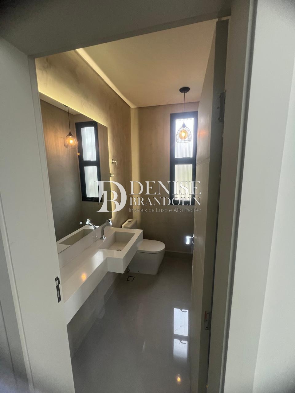 Sala de estar com pé direito duplo , sala de jantar, home theater que pode ser revertido em uma suíte no térreo, com ar condicionado, lavabo, escritório planejado.